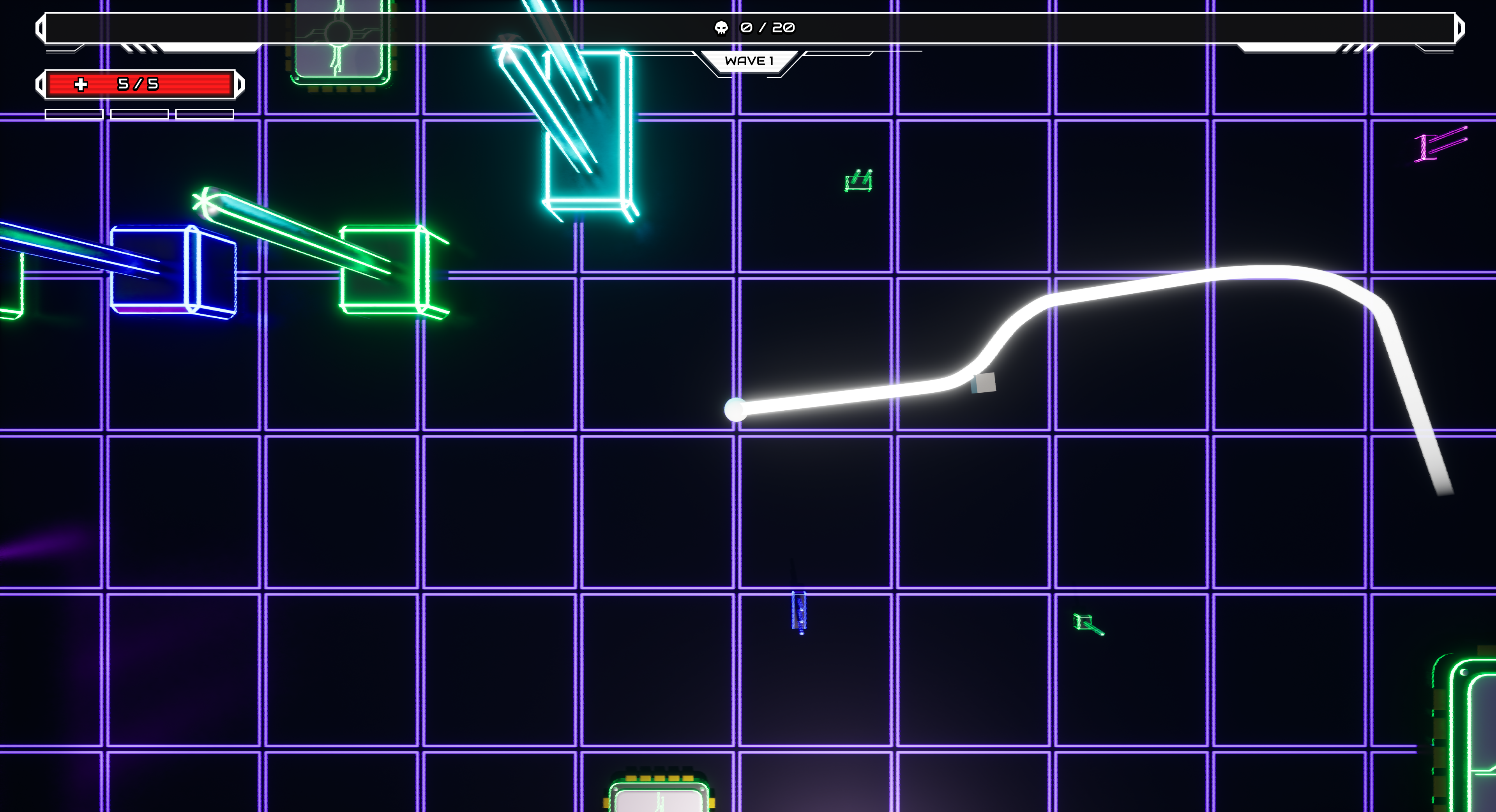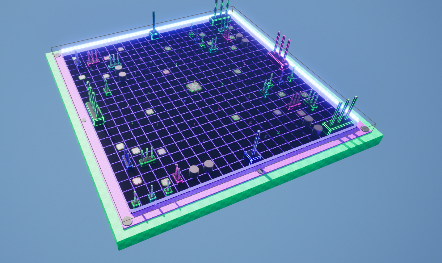 • For some of the obstacles around the Arena, I wanted to make obstacles not just things players needed to avoid and get blocked by, but having obstacles that offered guidance in Laser Loop Pathing, and giving ideas for unique shapes to destroy the bugs!